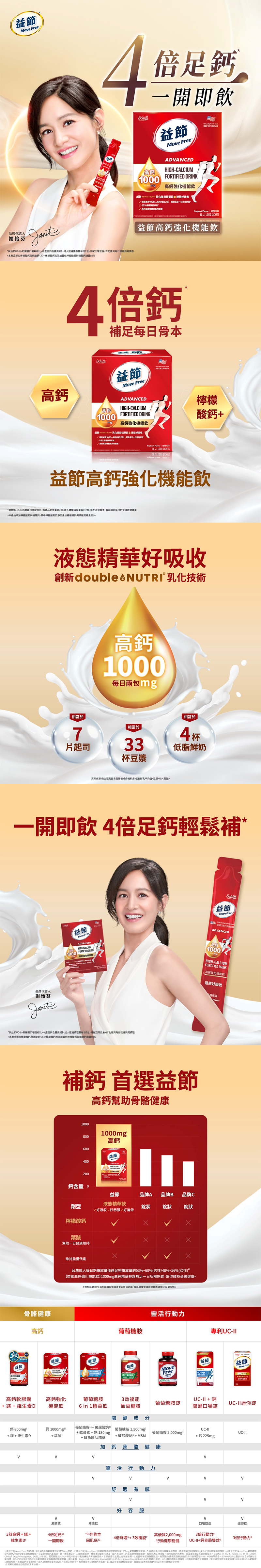 • 益節系列產品,本產品含每日建議量最高鈣劑量添加