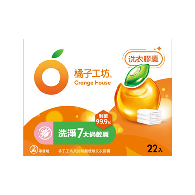 橘子工坊 天然制菌低敏洗衣膠囊20gx22顆