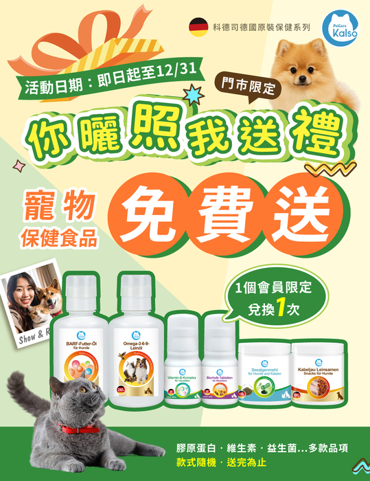 🎁到美康門市📜出示FB張貼「與毛孩合照」貼文,即可免費得到寵物保健品 1 份!